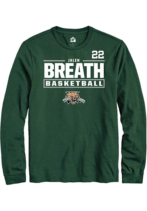 Embrace the spirit of your favorite player in this Ohio Bobcats Green NIL Stacked Box Jalen Breath Long Sleeve Player Tee! This Player T Shirt features a NIL graphic, so everyone will know you cheer for Ohio, Jalen Breath! This is the perfect Bobcats Player Tee for game days. Stand Up and Cheer!
