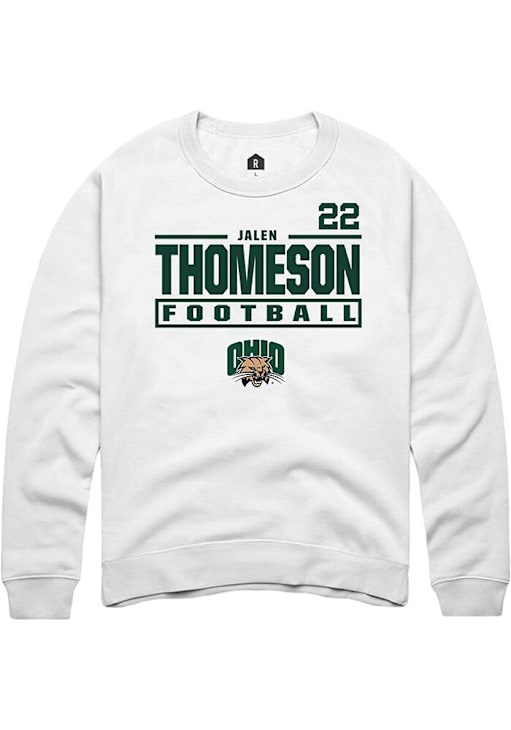 Support your Ohio Bobcats and favorite Jalen Thomeson in this Ohio Bobcats Mens White Football NIL Stacked Box Player Crew. This Crew Sweatshirt features a NIL graphic, and is sure to stand out in the stadium. Perfect to wear on game day or any day!