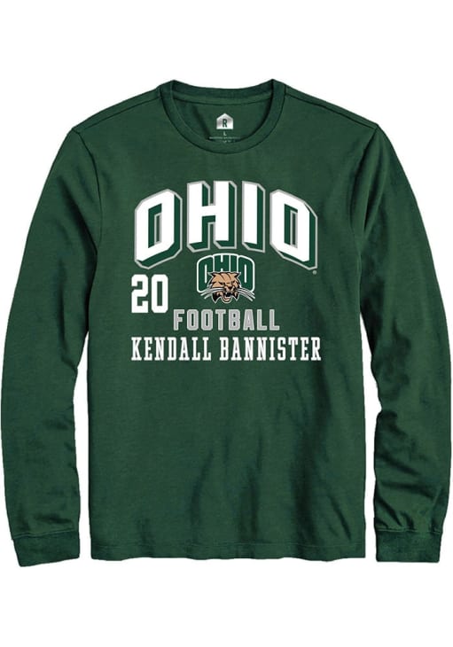 Embrace the spirit of your favorite player in this Ohio Bobcats Green Football NIL Arch Logo Kendall Bannister Long Sleeve Player Tee! This Player T Shirt features a NIL graphic, so everyone will know you cheer for Ohio, Kendall Bannister! This is the perfect Bobcats Player Tee for game days. Stand Up and Cheer!