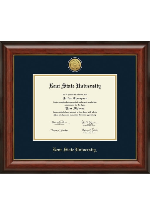 Kent State Golden Flashes Lancaster Diploma Frame is a great way to keep your Flash the Golden Eagle memories close. You'll love looking at your favorite Flash the Golden Eagle moments with this Diploma Frame, which features a showcase for your Kent State University diploma in a USA-made frame. Overall Size 15.625" x 13.625". Fight on for KSU!