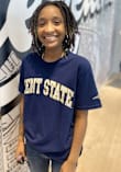 Support your Kent State Golden Flashes in this Navy Blue Short Sleeve Fashion Tee! This Arch Name With Sleeve Hit Fashion T Shirt features a distressed screen print of Kent State arched on front chest with logo on left sleeve. Be ready to yell "Fight on for KSU" when you wear this Kent State University Short Sleeve Fashion T Shirt in your favorite stadium or on the street.