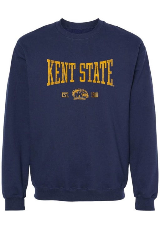 Gear up for the ultimate game day experience with this remarkable Kent State Golden FlashesWomens Navy Blue Stretch Arch Crew Sweatshirt! Designed with the true fan in mind, this Flash the Golden Eagle Long Sleeve Sweatshirt features a screen print team name on center chest. Stay warm and comfortable with this Womens Kent State University Flash the Golden Eagle Crew Sweatshirt.