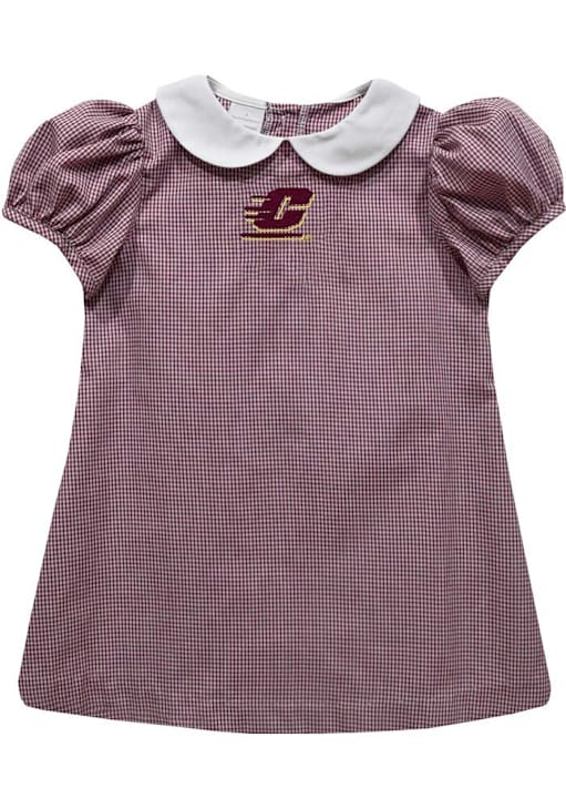 Let your baby's unique style show in this Central Michigan Chippewas Baby Girls Dress. Featuring a embroidered team logo and gingham print, this Maroon Chippewas Dress is the perfect way to show off your style and pride for the Central Michigan Chippewas.