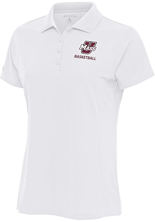 Enhance your professional style with this striking Womens White Short Sleeve Polo Shirt! Showcase your team pride among colleagues with this exceptional Umass White Basketball Legacy Pique Short Sleeve Polo. Stand out and make a statement in this Massachusetts Minutemen Short Sleeve Polo, featuring a princess and underarm seams, open cuffs, side slits and flat knit collar that adds a touch of distinction to your look.