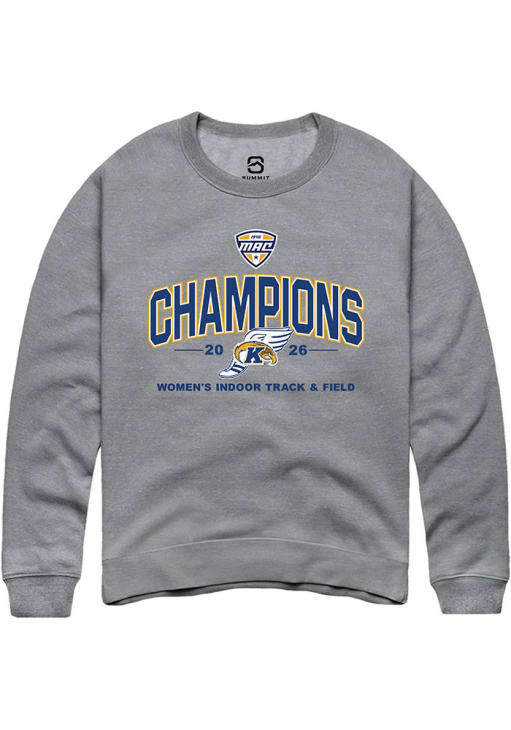Gear up for the ultimate game day experience with this remarkable Kent State Golden FlashesMens Grey MAC 2026 Women's Indoor Track & Field Champions Crew Sweatshirt! Designed with the true fan in mind, this Flash the Golden Eagle Long Sleeve Crew Sweatshirt features a championship team logo. Stay warm and comfortable with this Mens Kent State University Flash the Golden Eagle Crew Sweatshirt.