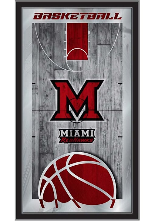 Silver Miami RedHawks Basketball Hanging Back Bar Mirror