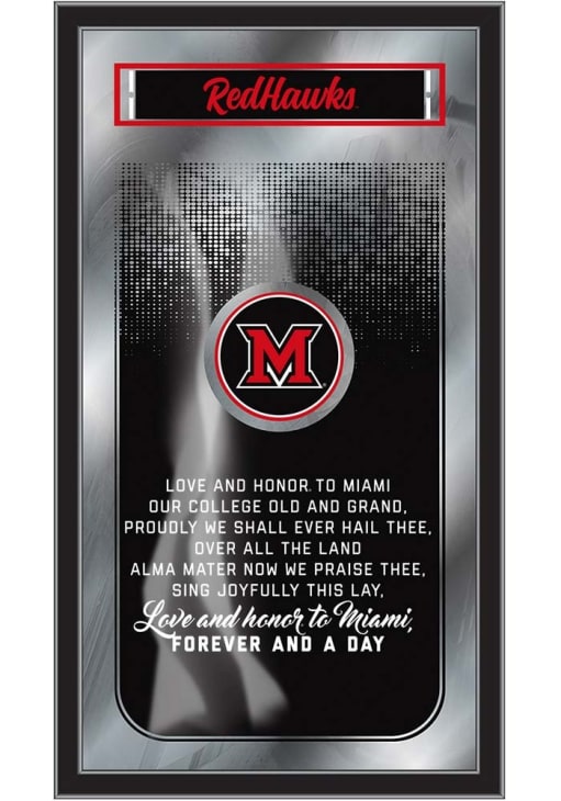 Product Details Product Details Vibrant, full color artwork1/8" glass with Mirrored Accents15" x 26" matt black wood frameSaw-tooth hanger for easy hangingGreat gift for any occasion!USA Officially Licensed This Miami RedHawks Fight Song Hanging Back Bar Mirror is a great addition to show your Redhawks pride. A great match to the game room bar, this Back Bar Mirror features a team logo that will be sure to draw attention to your fan cave.