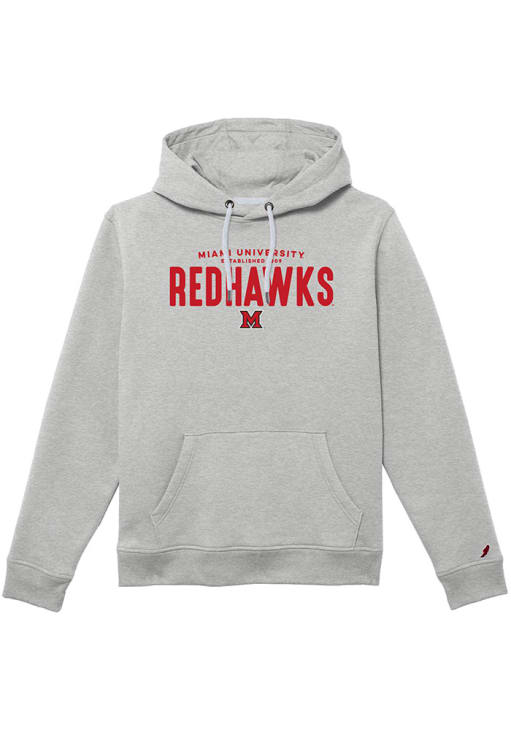 Embrace your Redhawks pride and showcase your team spirit with confidence in this Miami RedHawks Long Sleeve Hoodie! Stay warm and stylish with the Miami of Ohio Mens Ash Team Name Mascot Hooded Sweatshirt. Designed with screen print team graphic, this Redhawks Long Sleeve Hoodie is a must-have for dedicated fans.