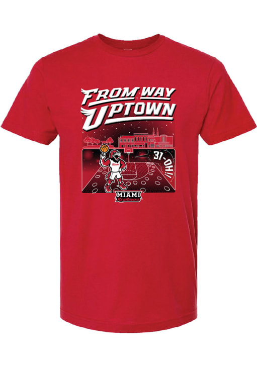 Support your Miami RedHawks in this Red Short Sleeve Fashion Tee! This 2026 Men's Basketball 31-OH From Way Uptown Fashion T Shirt features a screen print graphic. Be ready to yell "Go RedHawks" when you wear this Miami of Ohio Short Sleeve Fashion T Shirt in your favorite stadium or on the street.