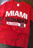 Display your team spirit with this remarkable Miami RedHawks New Agenda Red Alumni Short Sleeve T Shirt! The Miami of Ohio Short Sleeve Tee showcases a Screen print of arched team name with mascot and "Alumni" across chest that truly sets it apart. Stand out from the crowd and proudly declare your allegiance to the Redhawks with this exceptional Red Miami of Ohio T Shirt. Go RedHawks!