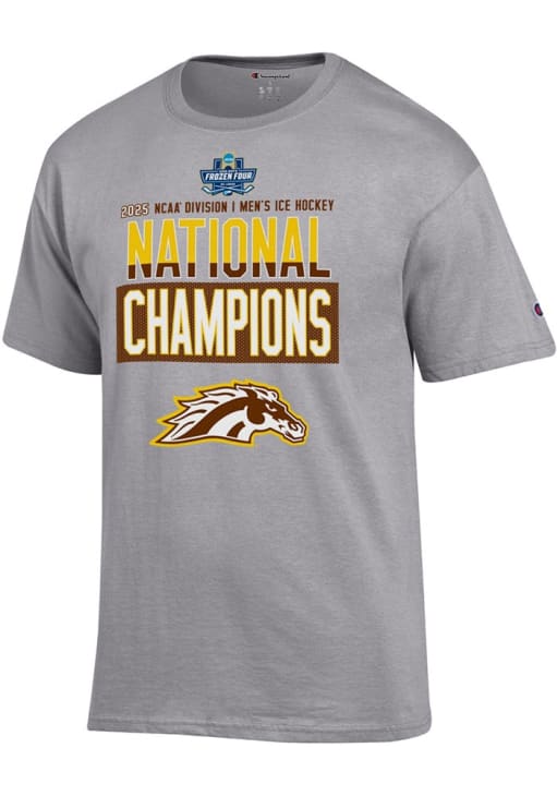 Western Michigan Broncos Grey Champion 2025 National Mens Hockey Champions Locker Room Short Sleev..
