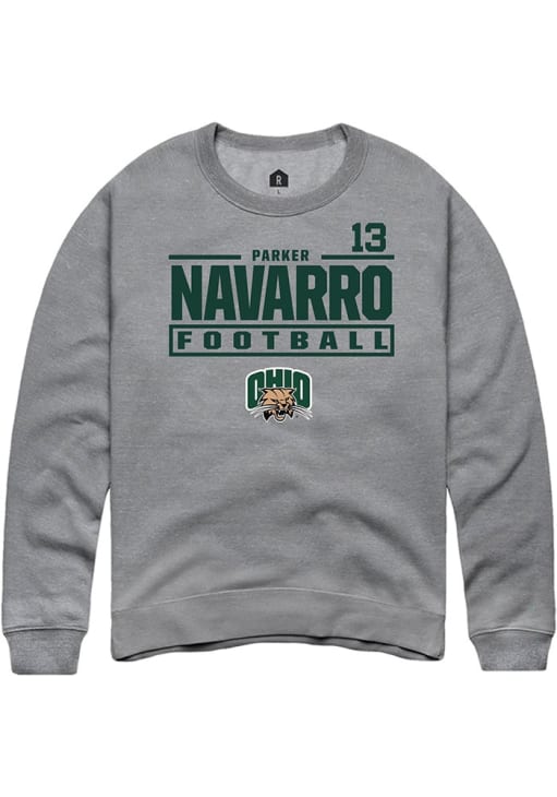 Parker Navarro Rally Mens Graphite Ohio Bobcats Football NIL Stacked Box Crew Sweatshirt