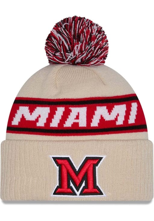 Size Chart for Miami RedHawks New Era DL Team Slogan Pom Cuff Mens Knit Hat - Natural