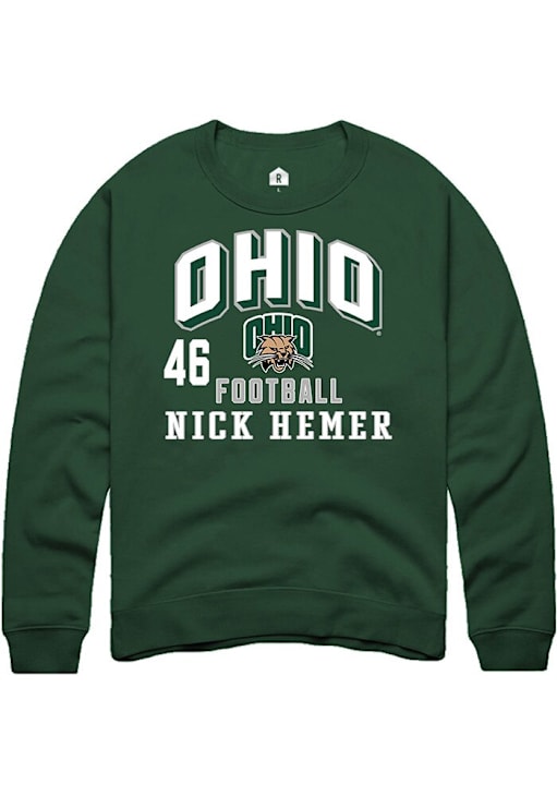 Nick Hemer Rally Mens Green Ohio Bobcats Football NIL Arch Logo Crew Sweatshirt