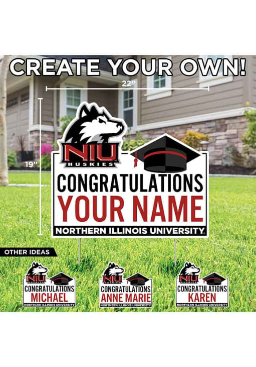 Product Details Product Details First Name ONLY.Approximatley 19"x22"Cut to Shape Weatherproof PlasticMetal Stakes IncludedFull Color PrintCustomized Graduation Sign with your name! Officially Licensed Northern Illinois Huskies Custom Grad Yard Sign will let everyone know you root for the Huskies proudly. This Yard Sign features a weather resistant material.