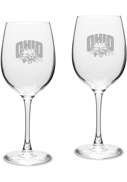 White Ohio Bobcats Hand Etched Set of 2 16oz Wine Glass