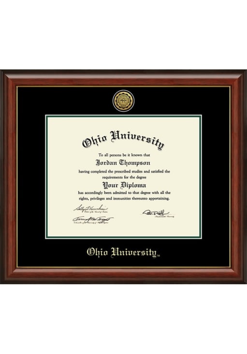 Ohio Bobcats Lancaster Diploma Frame is a great way to keep your Bobcats memories close. You'll love looking at your favorite Bobcats moments with this Diploma Frame, which features a showcase for your Ohio University diploma in a USA-made frame. Overall Size 20.625" x 17.625". Stand Up and Cheer!