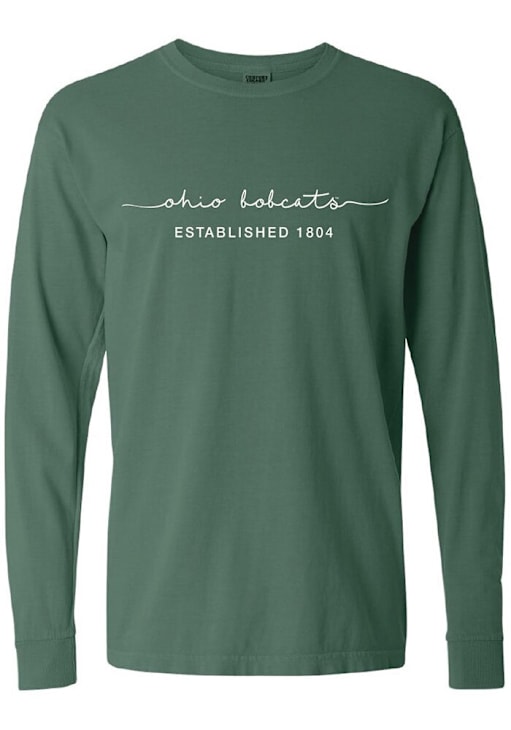 Show your Ohio Bobcats spirit in this Ohio Green T-Shirt! This Ohio Classic Script Long Sleeve T-Shirt makes a great layer for cooler nights cheering on the Bobcats. Featuring a screenprint team name and logo, this Ohio Bobcats Long Sleeve LS Tee is an essential addition for every fan. Stand Up and Cheer!