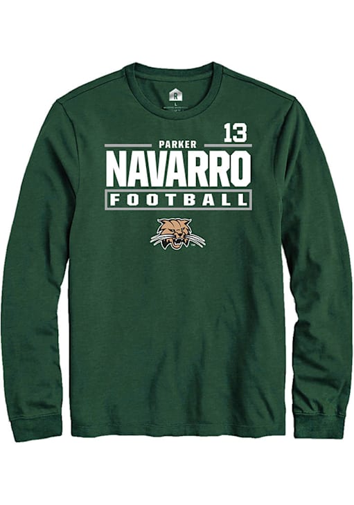Parker Navarro Rally Mens Green Ohio Bobcats Football NIL Stacked Box Tee
