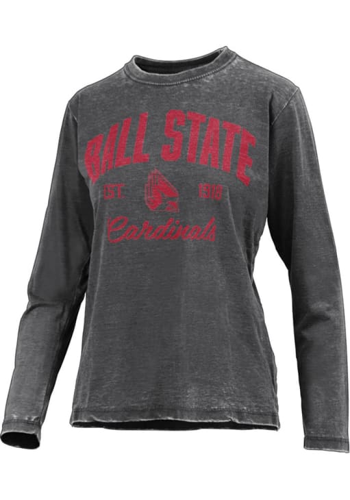 Show your Ball State Cardinals spirit in this Ball State Black T-Shirt! This Ball State Vintage Burnout Long Sleeve T-Shirt makes a great layer for cooler nights cheering on the Cardinals. Featuring a screen print team name, logo, and year est. on full chest, this Ball State Cardinals Long Sleeve LS Tee is an essential addition for every fan. Go Cardinals!