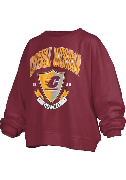 Gear up for the ultimate game day experience with this remarkable Central Michigan ChippewasWomens Maroon Janise Crew Sweatshirt! Designed with the true fan in mind, this Chippewas Long Sleeve Sweatshirt features a screen print team name and logo on center chest. Stay warm and comfortable with this Womens CMU Chippewas Chippewas Crew Sweatshirt.