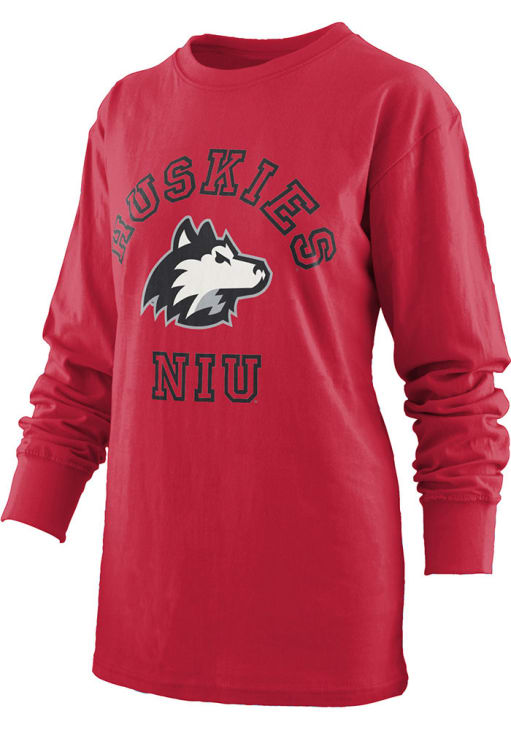 Show your Northern Illinois Huskies spirit in this Northern Illinois Red T-Shirt! This Northern Illinois Oversized Long Sleeve T-Shirt makes a great layer for cooler nights cheering on the Huskies. Featuring a screenprint team name and team logo on center chest, this Northern Illinois Huskies Long Sleeve LS Tee is an essential addition for every fan. Go Huskies!