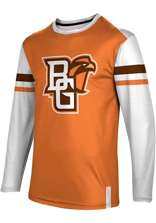 Show your Bowling Green Falcons spirit in this Orange T Shirt! This Old School Long Sleeve T Shirt makes a great layer for cooler nights cheering on the Falcons. Featuring a fully sublimated design, this Bowling Green Falcons Long Sleeve Tee is an essential addition for every fan. Go Falcons!