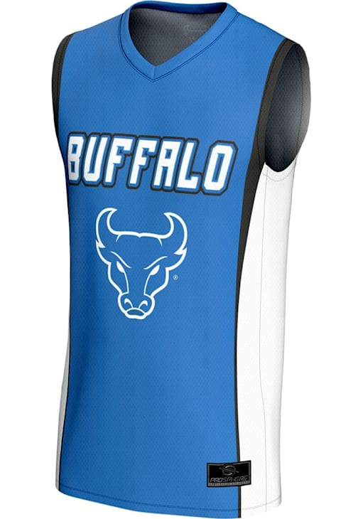Product Details Product Details Comfortable, semi-fitted, moderately loose fitCover hemmed bottom and armholesSmaller armholes than a traditional jerseyRibbed arm and neck trimAuthentic tank jerseyFit: True to Size92% POLYESTER/8% SPANDEXCrew Neck Officially Licensed Every Buffalo fan needs a Youth Blue Buffalo Bulls Basketball Jersey! This Buffalo Jersey features a screen print team graphic. Dress up to match the spirit of Bulls for gameday!
