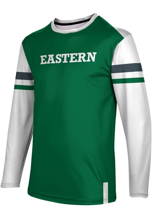 Show your Eastern Michigan Eagles spirit in this Eastern Michigan Green T Shirt! This Eastern Michigan Old School Long Sleeve T Shirt makes a great layer for cooler nights cheering on the Eagles. Featuring a fully sublimated long sleeve tee with an active and comfortanle construction, this Eastern Michigan Eagles Long Sleeve Tee is an essential addition for every fan. Go Eagles!