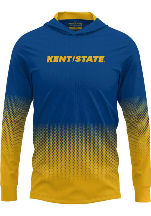 Embrace your Flash the Golden Eagle pride and showcase your team spirit with confidence in this Kent State Golden Flashes Long Sleeve Hoodie! Stay warm and stylish with the Kent State University Mens Navy Blue Hex Pro Hooded Sweatshirt. Designed with fully sublimated long sleeve hooded tee with an active and comfortable construction, this Flash the Golden Eagle Long Sleeve Hoodie is a must-have for dedicated fans.