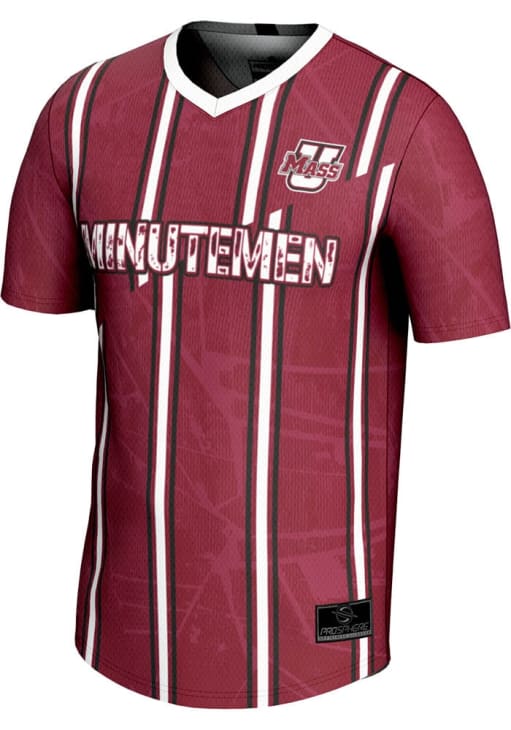 Every Umass fan needs a Youth Maroon Massachusetts Minutemen Soccer Jersey! This Umass Jersey features a fully sublimated jersey with an active and comfortable construction. Dress up to match the spirit of Minutemen for gameday!