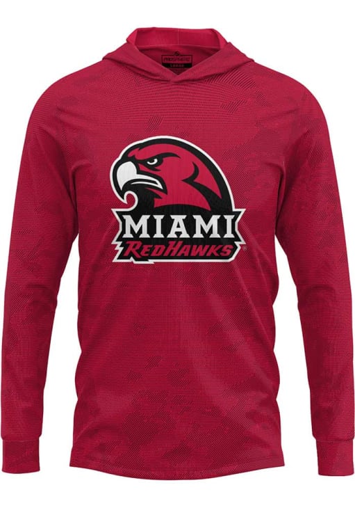 Embrace your Redhawks pride and showcase your team spirit with confidence in this Miami RedHawks Long Sleeve Hoodie! Stay warm and stylish with the Miami of Ohio Mens Red Disrupter Hooded Sweatshirt. Designed with fully sublimated long sleeve hooded tee with an active and comfortable construction, this Redhawks Long Sleeve Hoodie is a must-have for dedicated fans.