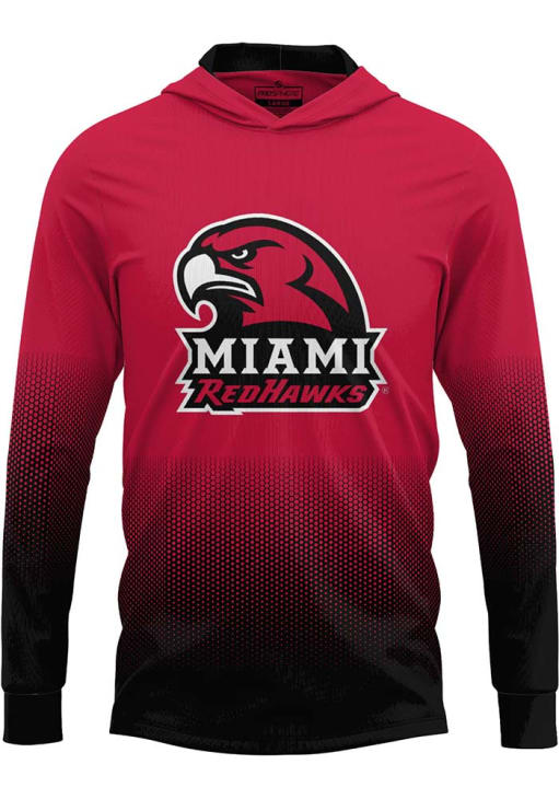 Embrace your Redhawks pride and showcase your team spirit with confidence in this Miami RedHawks Long Sleeve Hoodie! Stay warm and stylish with the Miami of Ohio Mens Red Hex Pro Hooded Sweatshirt. Designed with fully sublimated long sleeve hooded tee with an active and comfortable construction, this Redhawks Long Sleeve Hoodie is a must-have for dedicated fans.
