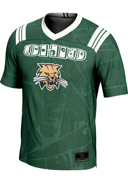 Get in the game with this ultimate Ohio Bobcats Mens Green Vigor Football Football Jersey. Wear this Jersey to the upcoming tailgate or game for your Bobcats. With a screenprint number on front with team name and number on back, this Mens Football Jersey is a great way to show your team spirit in style.