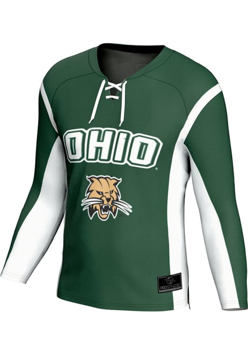 Every Ohio fan needs a Youth Green Ohio Bobcats Hockey Jersey! This Ohio Jersey features a fully sublimated jersey with an active and comfortable construction. Dress up to match the spirit of Bobcats for gameday!