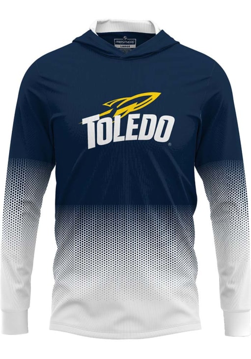 Embrace your Rockets pride and showcase your team spirit with confidence in this Toledo Rockets Long Sleeve Hoodie! Stay warm and stylish with the Toledo Mens Navy Blue Hex Pro Hooded Sweatshirt. Designed with fully sublimated design, this Rockets Long Sleeve Hoodie is a must-have for dedicated fans.