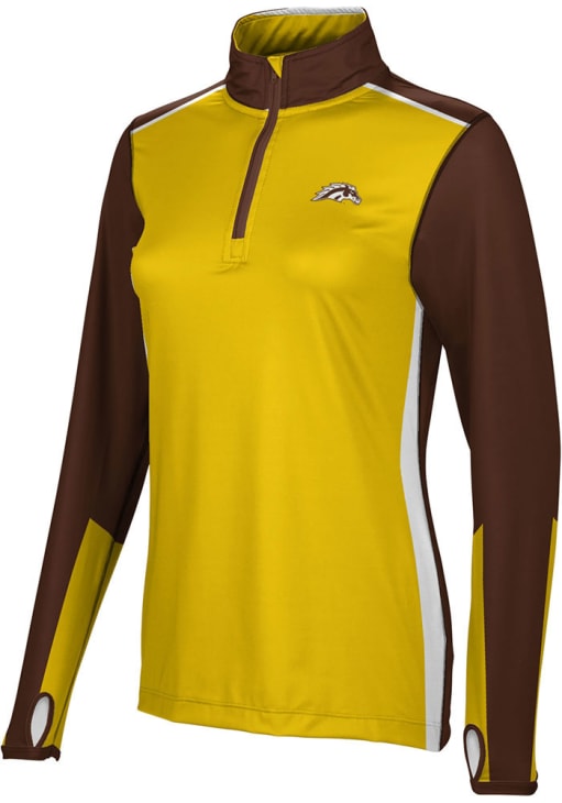 Embrace the warmth and showcase your Broncos pride with our Western Michigan Broncos Long Sleeve Qtr Zip. This Womens Brown Counter Long Sleeve Pullover offers a fully sublimated 1/4 zip with an active and comfortable construction for the perfect combination of comfort and style. Elevate your everyday look with this must-have Western Michigan Broncos Long Sleeve Qtr Zip.