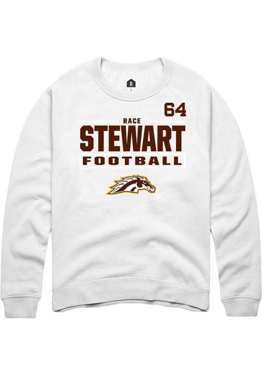 Support your Western Michigan Broncos and favorite Race Stewart in this Western Michigan Broncos Mens White Football NIL Stacked Box Player Crew. This Crew Sweatshirt features a NIL graphic, and is sure to stand out in the stadium. Perfect to wear on game day or any day!