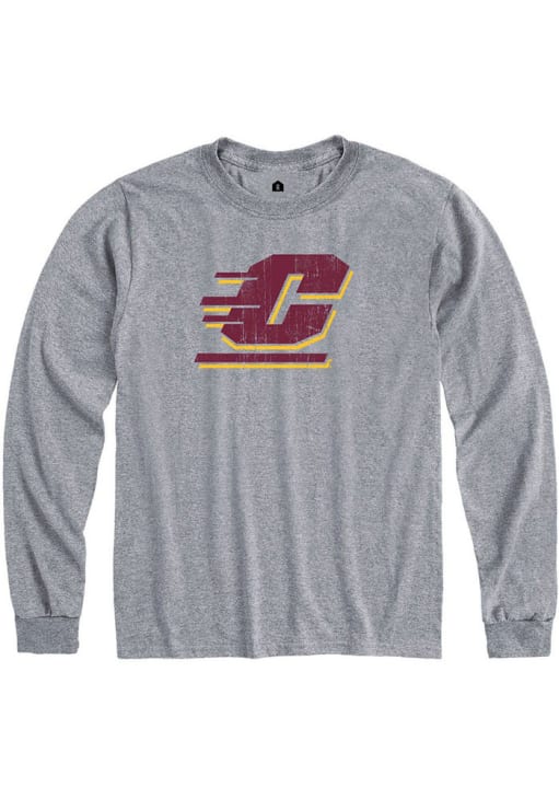 Show your Central Michigan Chippewas spirit in this CMU Chippewas Grey T Shirt! This CMU Chippewas Primary Team logo Distressed Long Sleeve T Shirt makes a great layer for cooler nights cheering on the Chippewas. Featuring a distressed screen print of Central Michigan C logo on center chest, this Central Michigan Chippewas Long Sleeve Tee is an essential addition for every fan. Hail Chippewa!