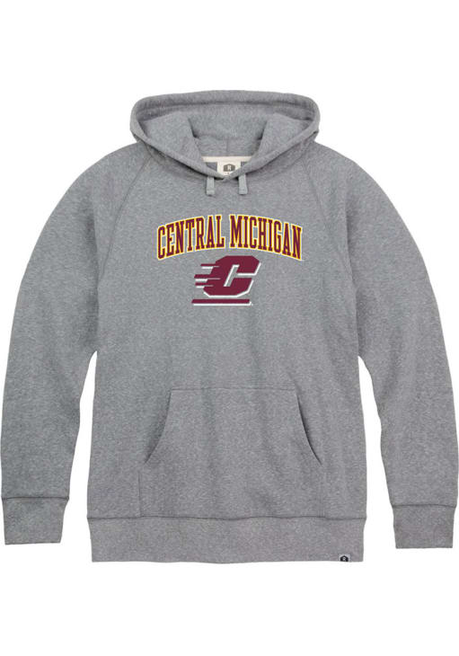 Mens Central Michigan Chippewas Grey Rally Arch Mascot Hooded Sweatshirt