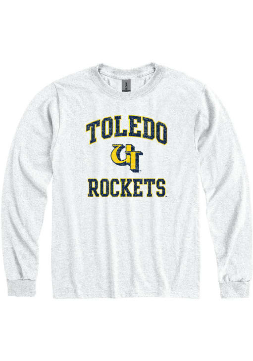 Show your Toledo Rockets spirit in this Toledo Grey T Shirt! This Toledo No 1 Vintage Graphic Long Sleeve T Shirt makes a great layer for cooler nights cheering on the Rockets. Featuring a Perrin Resort and Collegiate Apparel--3003--LS Practice Tee--COTTON, this Toledo Rockets Long Sleeve Tee is an essential addition for every fan. Go Rockets!