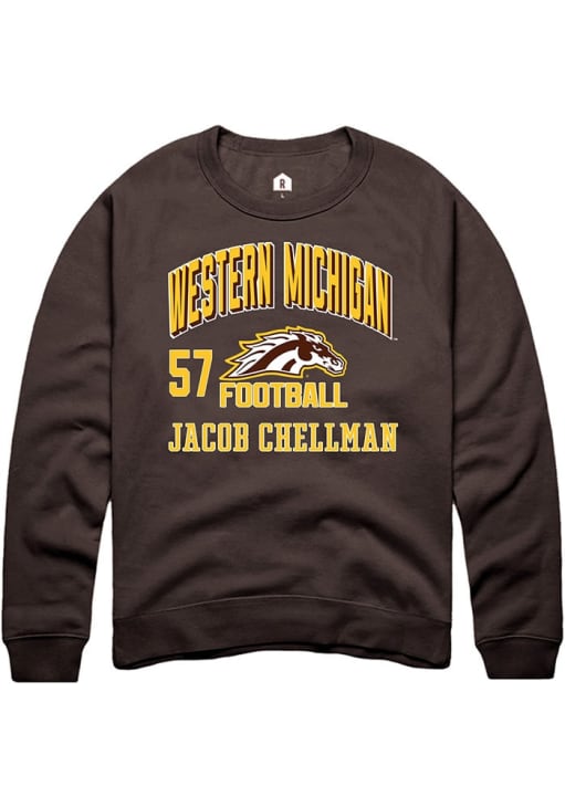 Jacob Chellman Rally Mens Brown Western Michigan Broncos Football NIL Arch Logo Crew Sweatshirt