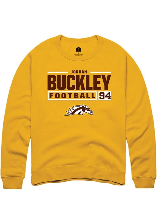 Jordan Buckley Rally Mens Gold Western Michigan Broncos Football NIL Stacked Box Crew Sweatshirt