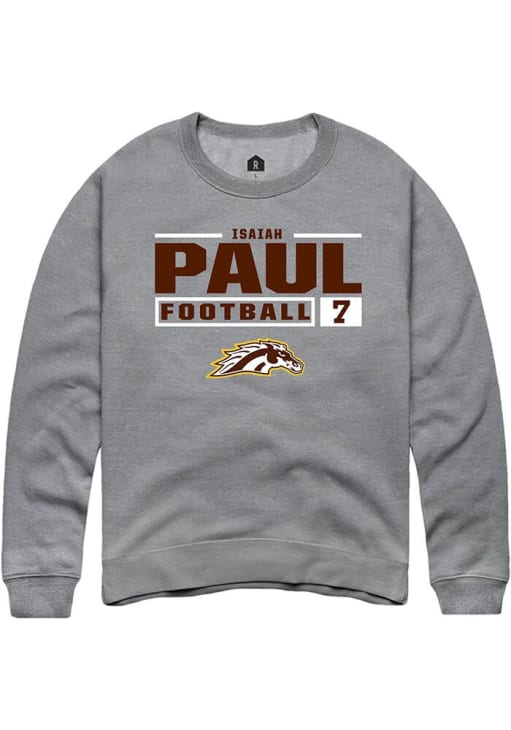 Isaiah Paul Rally Mens Grey Western Michigan Broncos Football NIL Stacked Box Crew Sweatshirt