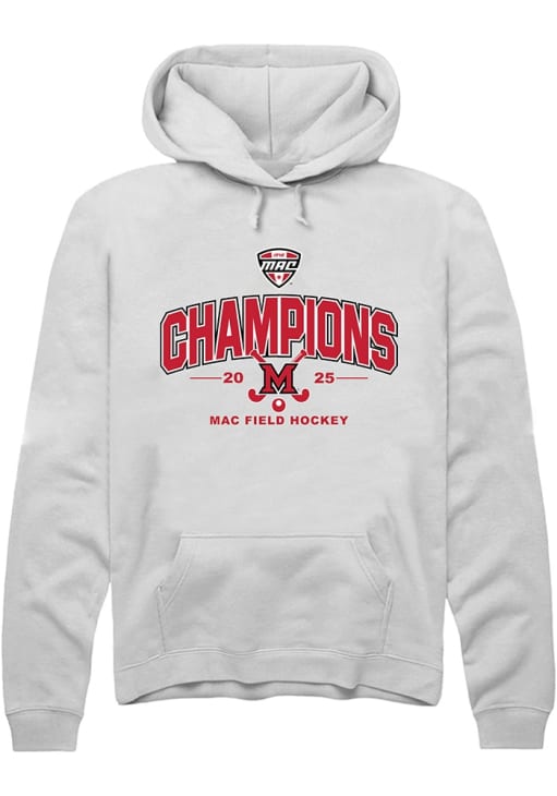 Embrace your Redhawks pride and showcase your team spirit with confidence in this Miami RedHawks Long Sleeve Hoodie! Stay warm and stylish with the Miami of Ohio Mens White 2025 MAC Field Hockey Champions Hooded Sweatshirt. Designed with championship team logo, this Redhawks Long Sleeve Hoodie is a must-have for dedicated fans.