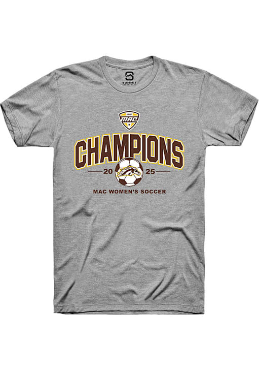 Display your team spirit with this remarkable Western Michigan Broncos Grey 2025 MAC Soccer Champions Short Sleeve T Shirt! The WMU Broncos Short Sleeve Tee showcases a championship team logo that truly sets it apart. Stand out from the crowd and proudly declare your allegiance to the Broncos with this exceptional Grey WMU Broncos T Shirt. Go Broncos!