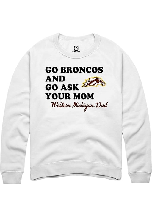 Gear up for the ultimate game day experience with this remarkable Western Michigan BroncosMens White Go Ask Your Mom Crew Sweatshirt! Designed with the true fan in mind, this Broncos Long Sleeve Crew Sweatshirt features a team graphic. Stay warm and comfortable with this Mens WMU Broncos Broncos Crew Sweatshirt.