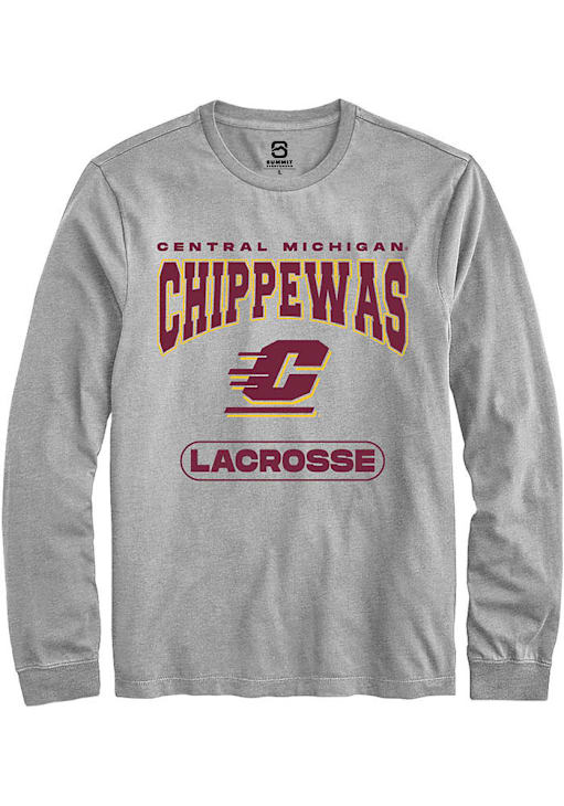 Show your Central Michigan Chippewas spirit in this CMU Chippewas Grey T Shirt! This CMU Chippewas Lacrosse Long Sleeve T Shirt makes a great layer for cooler nights cheering on the Chippewas. Featuring a digitally printed graphic, this Central Michigan Chippewas Long Sleeve Tee is an essential addition for every fan. Hail Chippewa!