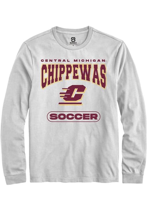 Show your Central Michigan Chippewas spirit in this CMU Chippewas White T Shirt! This CMU Chippewas Soccer Long Sleeve T Shirt makes a great layer for cooler nights cheering on the Chippewas. Featuring a digitally printed graphic, this Central Michigan Chippewas Long Sleeve Tee is an essential addition for every fan. Hail Chippewa!