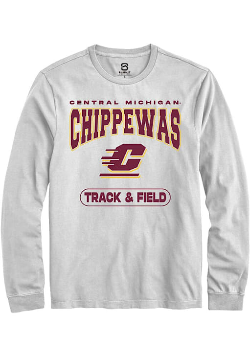 Show your Central Michigan Chippewas spirit in this CMU Chippewas White T Shirt! This CMU Chippewas Track & Field Long Sleeve T Shirt makes a great layer for cooler nights cheering on the Chippewas. Featuring a digitally printed graphic, this Central Michigan Chippewas Long Sleeve Tee is an essential addition for every fan. Hail Chippewa!